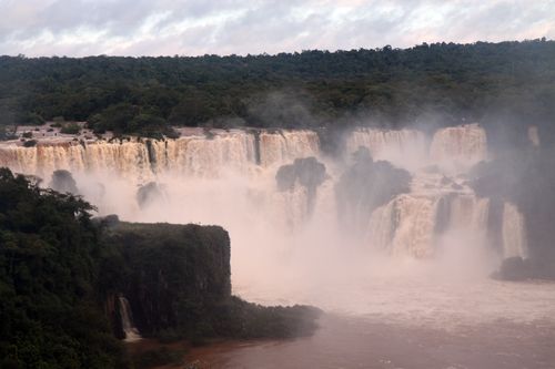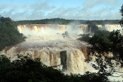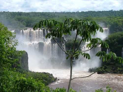 Водоспади Фоз ду Ігуасу – явище, яке називають одним із нових семи дивовиж світу. Унікальне місце. Це найбільший водоспад на світі за кількістю потоків – їх 275 і всі вони гуркотять так, що чути на кілька кілометрів навколо. Ще б пак, адже падають вони з 72 метрів, а загальний об'єм води – 1800 кубометрів! Основні потоки опускаються в ущелину, яку називають «Горлом диявола». Зі злими силами пов'язана і легенда про цей водоспад. Вона, як часто буває, про нещасливе кохання. В долині метеликів жила красуня Наїпі, донька ватажка племені Гуарані. Наїпі, без її згоди, певна річ, назвав своєю жінкою бог із реперським ім&lsquo-ям M`boy, котрий, як правило, перевтілювався у велетенську зміюку. Але дівчина кохала іншого – хороброго воїна Таробаха. Закохані вирішили втекти, вирушивши на каное по річці Ігуасу. І коли змієподібний велет дізнався про це, то дуже розсердився. І, за однією з версій, зі злості як вдарив своїм гігантським зміїним хвостом по річці, що прорубав величезну прірву (за іншою версією змій поліз вглиб землі і зробив розлом, але це не так ефектно звучить, як хвостом по водіJ ). Закохані зникли: Наїпі перетворилася на скелю, а Таробах – на самотню пальму. І коли з&lsquo-являється веселка, що з'єднує скелю з пальмою – це так ніжно обіймають один одного закохані. Веселка там справді дуже яскрава і виникає постійно. Побачивши її вперше, туристи панічно починають природне різнобарв&lsquo-я фотографувати, пам'ятаючи, що це диво природи швидко зникає. Але, коли веселка за короткий час з&lsquo-являється знову й знову, а наприкінці маршруту ти можеш фактично торкнутися її рукою, тоді вже просто насолоджуєшся цією дивовижею без поспіху і суєти.